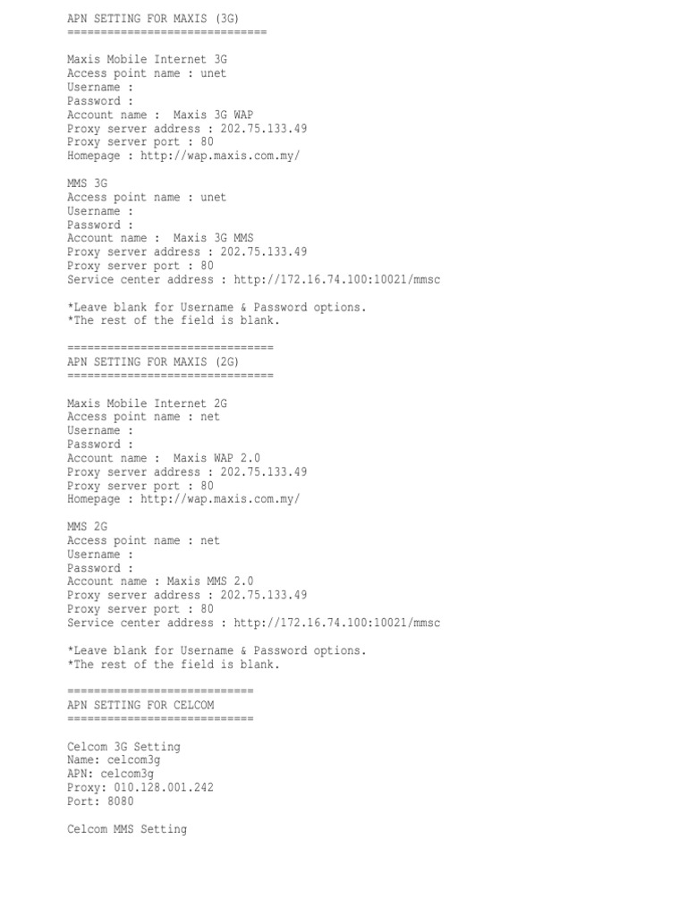 This time around, celcom, digi and maxis have signed a memorandum of understanding (mou) to explore joint efforts in developing the fibre infrastructure of malaysia. Comparing celcom, maxis, digi iphone plans and recommend the iphone plan murah & terbaik. Celcom digi maxis u mobile tm/unifi mobile yes. Maxis, digi and celcom also earned acceptable ratings with very close scores of 76.3, 75.1, 74.6 maxis leads with scores above 20 mbps, followed by digi and celcom, with users experiencing 14.5. Maxis 3g mms proxy server address.